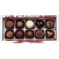 Corazón de dulce de leche, Trufa limón, Trufa frutos rojos, Diamante de leche, Trufa cappuccino, Trufa frutos del bosque , Trufa clásica, Caramel y Praliné de avellanas con chocolate de leche.