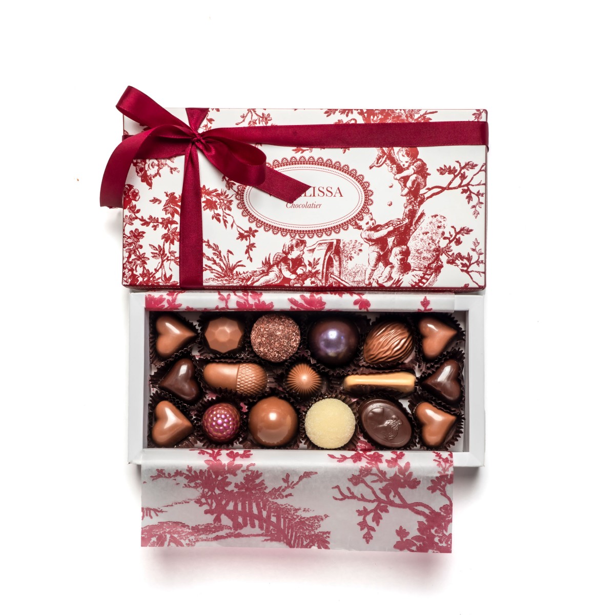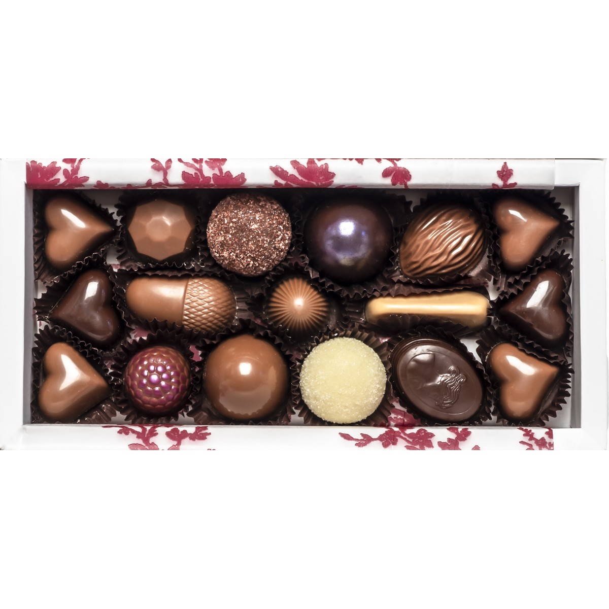 Caramelle, Corazón de dulce de leche, Vasalissa de amaretto, Ghianda de almendras, Diamante de leche, Nuez , Trufa frutos rojos, Trufa limón, Dome de Dulce de leche y nuez, Dome de frambuesas y amarenas, Frambuesa y 3 pimientas.