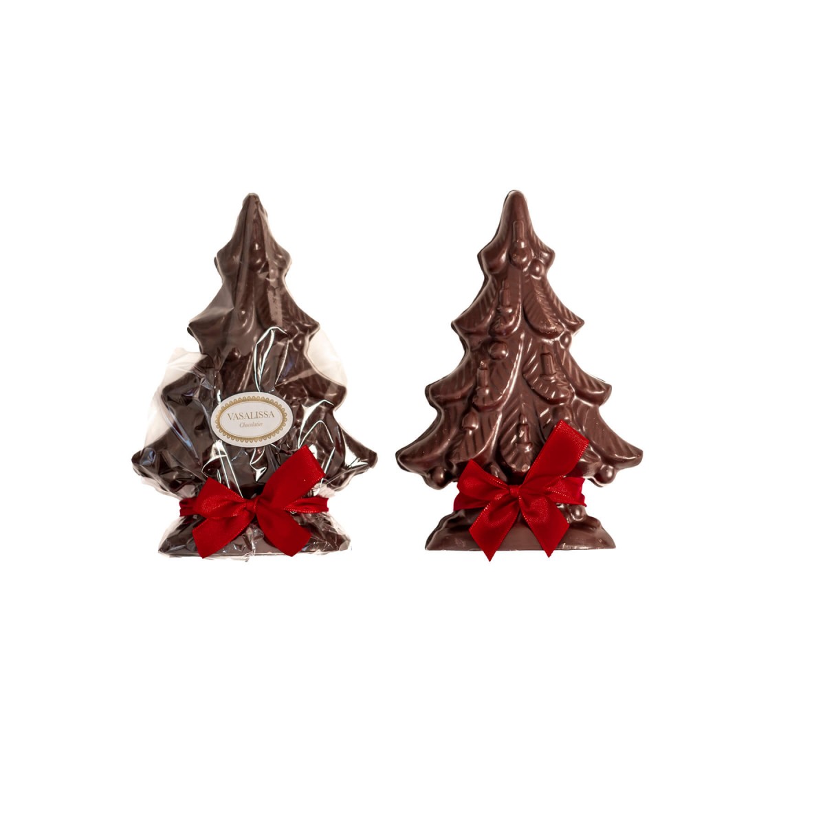 Figura de chocolate amargo sin azúcar con forma de árbol navideño. (Esta figura es hueca)0
