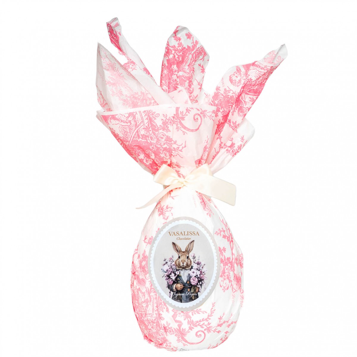 Huevo de Pascua de 20cm de alto en chocolate con leche. Sorpresas almendras bañadas en chocolate con leche y chocolate amargo. (Los colores de los envoltorios pueden variar)