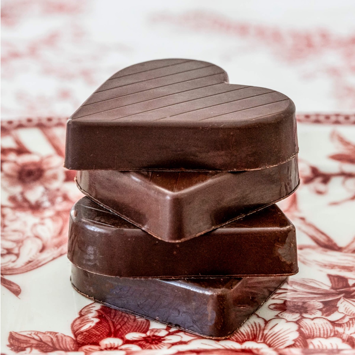 DESCRIPCION: Medallón en forma de corazón de chocolate amargo relleno de dulce de leche.