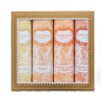 Caja con 4 tabletas, chocolate blanco, Gianduia, chocolate con leche con almendras y chocolate con leche con avellanas